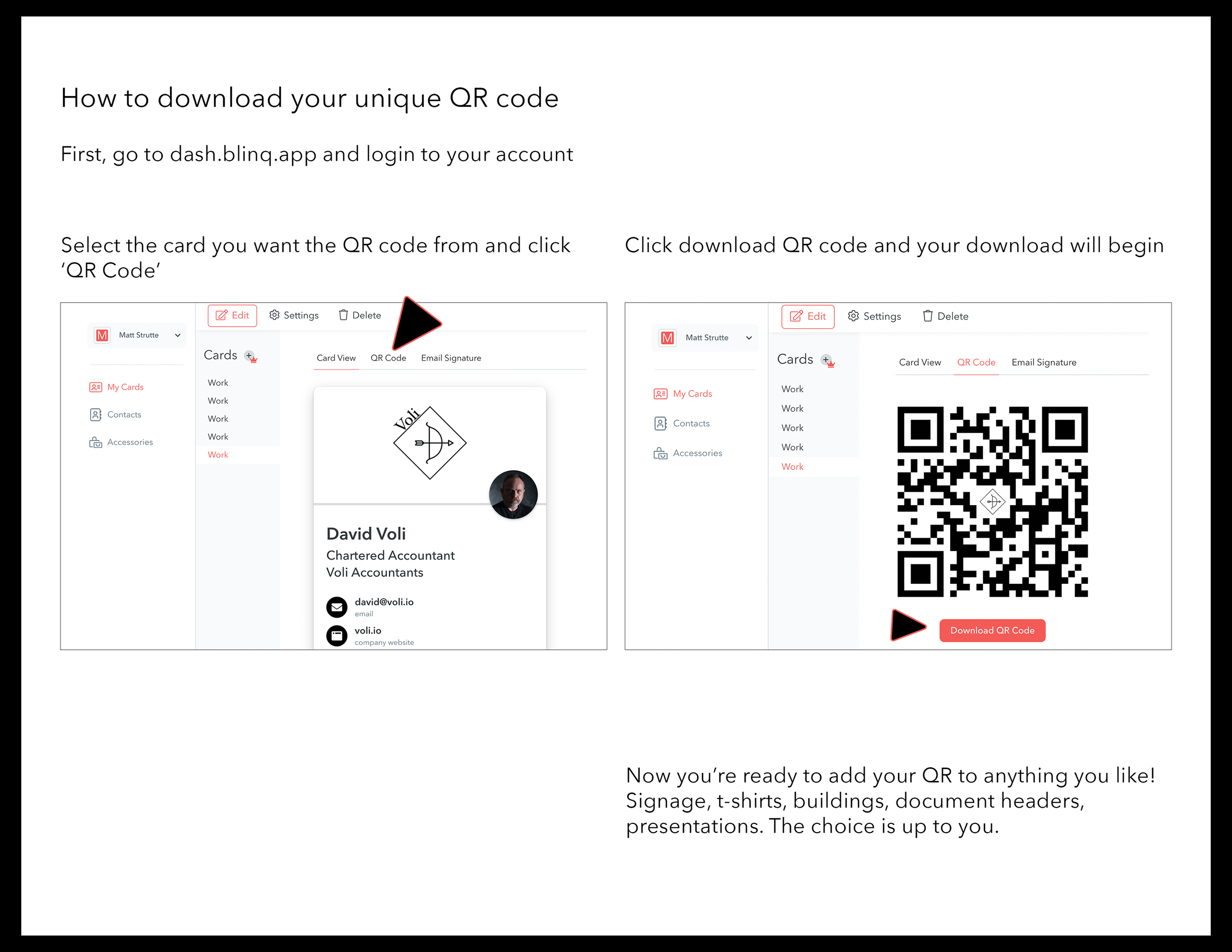 Use an image (Blinq logo, QR code, or card-style graphic)